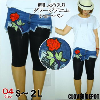 【15%ポイントバック! 7/28 9:59まで】即納 刺繍入り ダメージ デニム ショーパン ショートパンツ 短パン パンツ 大人 ジーンズ 楽チン 履き心地 レディース カジュアル きれいめ ゆるカワ かわいい レディス 衣装 春 夏 ボトムス ヴィンテージ メール便 送料無料