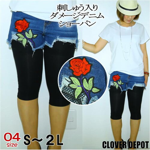 カラー デニムカラー 商品説明 刺繍入りダメージショーパンで自分だけのスタイルに♪