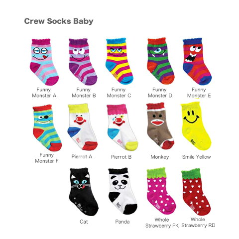 【メール便対応】ベビー クルーソックス B (赤ちゃん 靴下)おもしろかわいいキャラクター柄の靴下。ポップでカラフル、おしゃれデザインが可愛い♪男の子女の子のベイビーのスニーカーコーデに♪10cm〜13cm / 1歳〜3歳